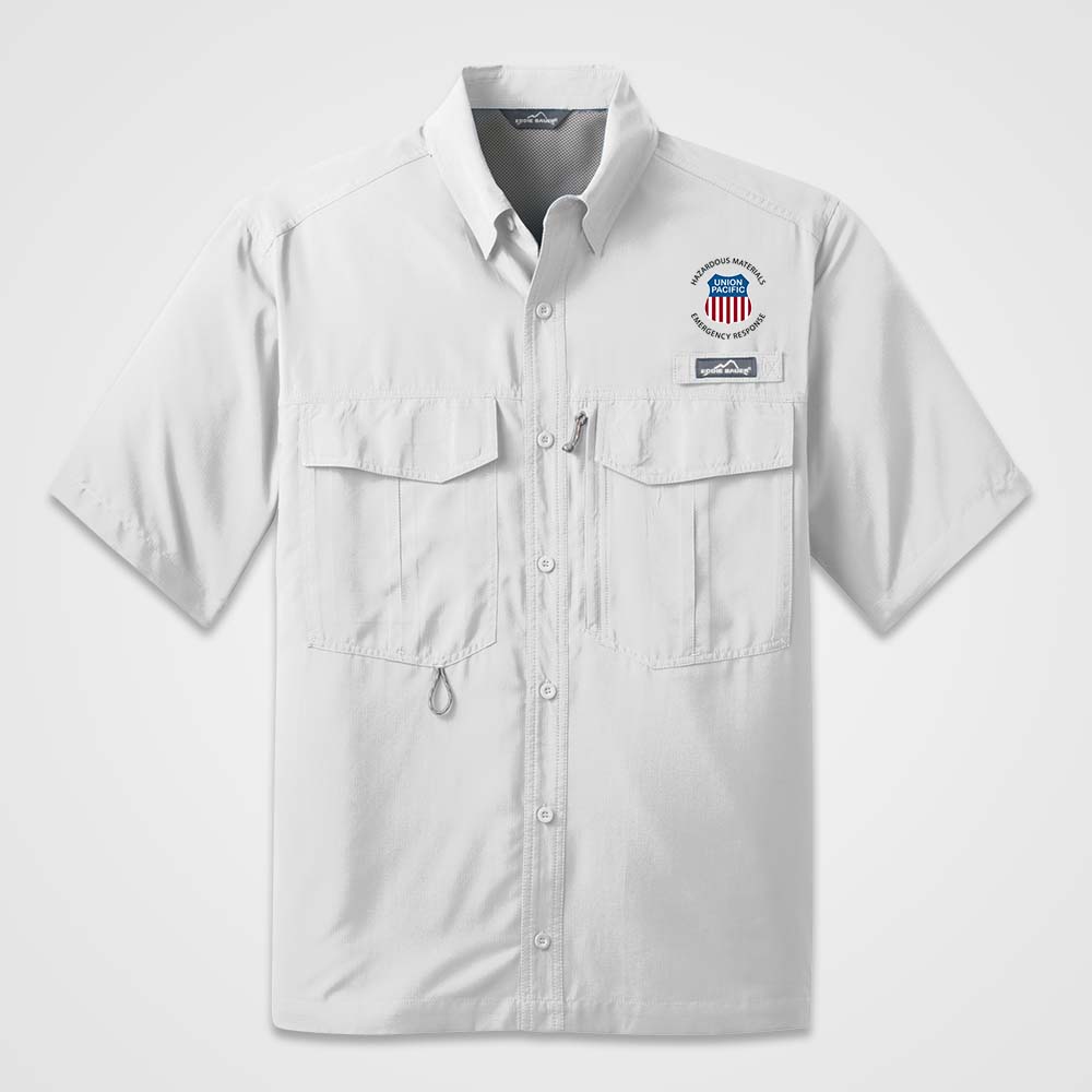 Eddie Bauer® Short Sleeve Performance Fishing Shirt EB602.Defend yourself from the sun, sweat and odors in our super lightweight, high-performance fishing shirt. This outdoor-ready style offers UPF 50+ protection and a moisture-control system that actively moves moisture away from your body to keep you cool, dry and comfortable. Microban® – technology minimizes odors.